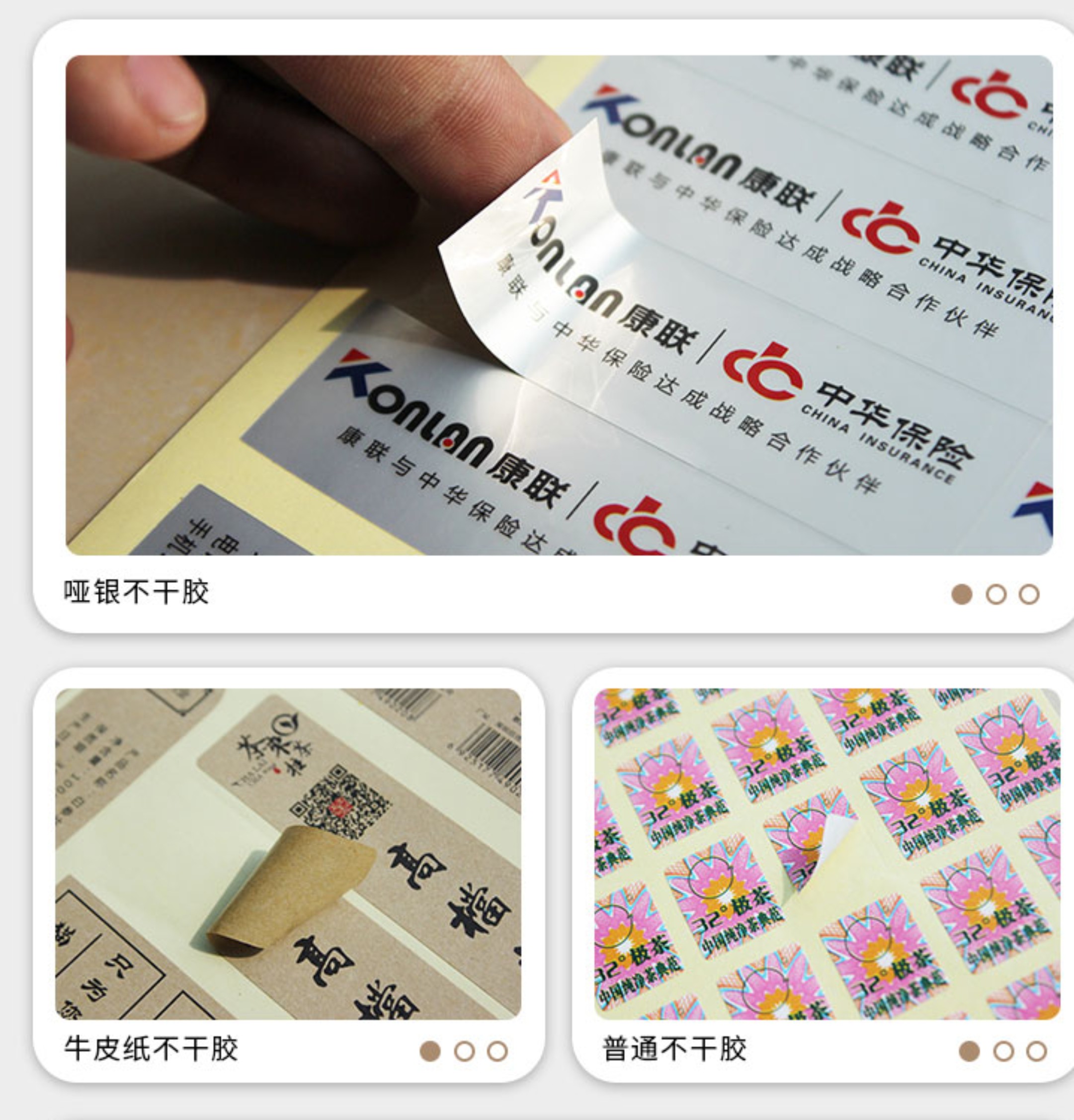 5、易碎紙不干膠標(biāo)簽:用于電器、移動(dòng)電話、食物等防偽封簽,剝離不干膠封簽后標(biāo)簽紙立刻破碎不行再使用。