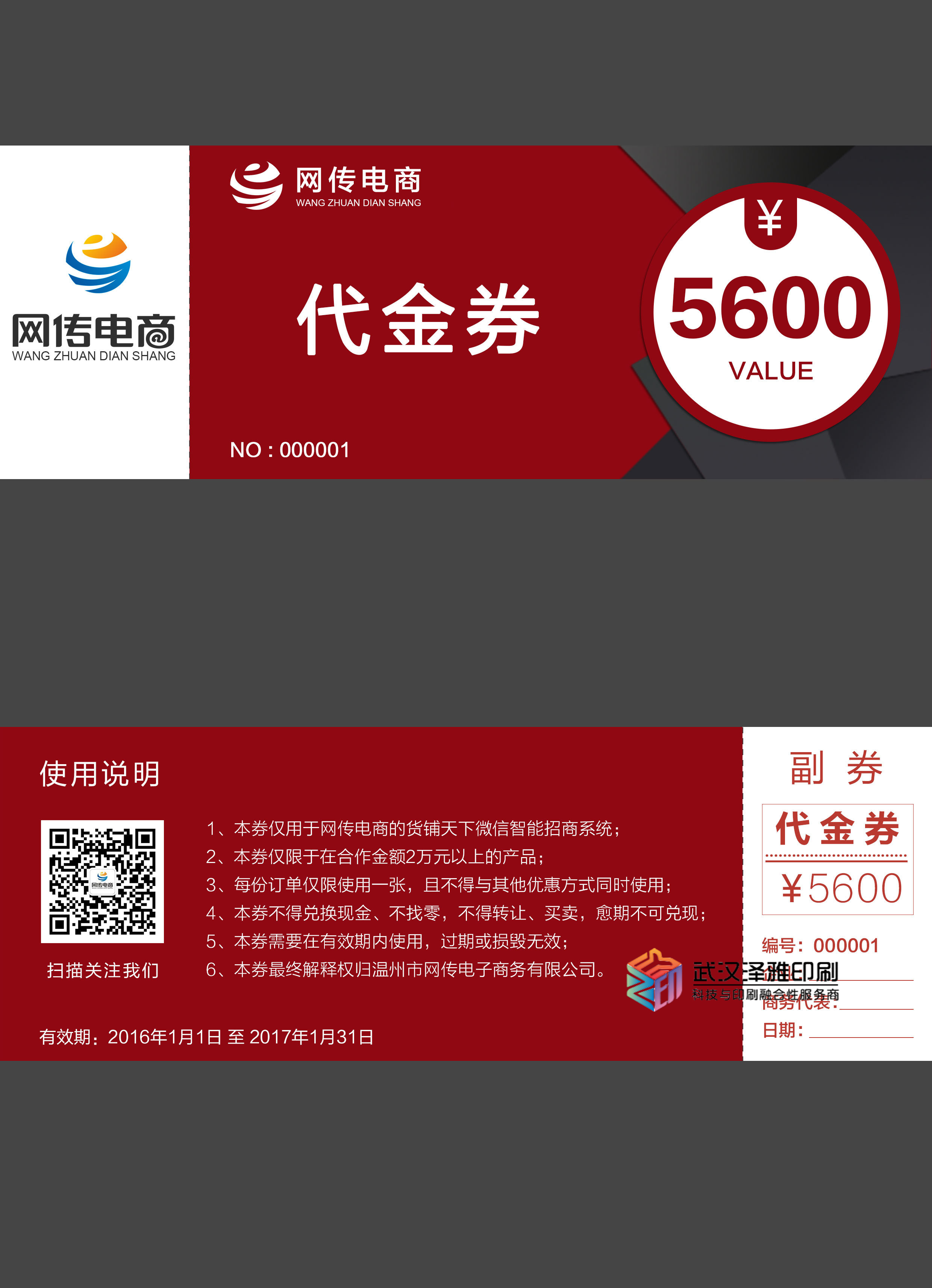 武漢澤雅印刷包裝公司真誠(chéng)歡迎各地朋友,以上是優(yōu)惠券印刷,代金券印刷,門(mén)票印刷,抽獎(jiǎng)券印刷,聯(lián)系洽談:18995659315如果你對(duì)我們的產(chǎn)品/服務(wù)有疑問(wèn),請(qǐng)聯(lián)系我們。http://www.wpsales.cn
